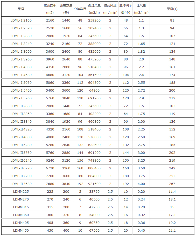 處理風量:259200 -- 691200m3/h LDML--II型