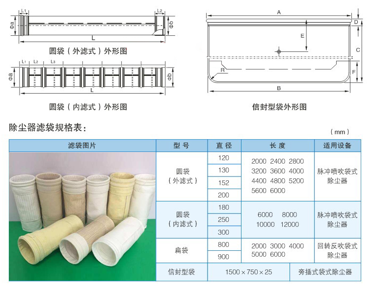 濾袋是決定袋式除塵器除塵效率和工作溫度的關鍵元件,更換濾袋的費用又是袋式除塵器的主要維修費用。濾袋工作壽命關系到除塵器的運行狀態(tài)和成本。因此,選擇合適的濾料和設計合理的結構就尤為重要了。 選擇濾料應根據(jù)氣體的溫度、濕度和化學特性;顆粒物的大小、重量、外形、有否啄磨性以及含塵濃度、過濾速度、清灰方式、排放濃度和袋式除塵器的工作制度等因素綜合考慮。